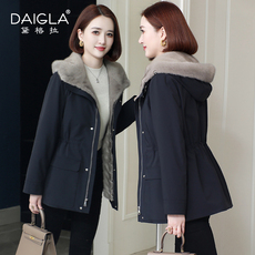 海宁皮草外套女新款冬季小个子妈妈短款可脱卸内胆水貂毛领派克服