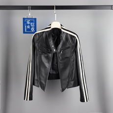海宁新款真皮机车皮衣绵羊皮网红爆款白条女短款外套设计感皮衣