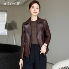 2023春秋新款海宁皮衣女短款韩版修身显瘦西装领小皮夹克大码外套