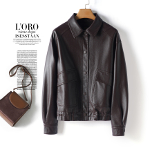 皮夹克短款外套翻领时尚休闲小个子绵羊皮秋冬新款海宁真皮女皮衣