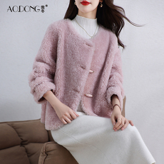 新款海宁颗粒绒皮草外套女短款一体加厚保暖牛角扣羊羔毛大衣冬季