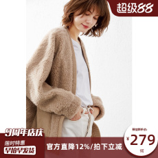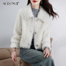 海宁颗粒绒皮草外套女短款羊剪绒甜美V领年轻减龄羊羔毛大衣冬季
