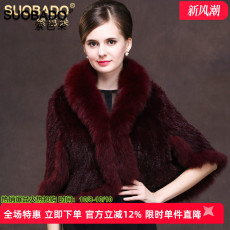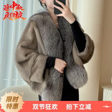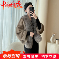 海宁水貂皮草外套短款女披肩斗篷狐狸毛貂皮大衣秋冬新款拼貂2024