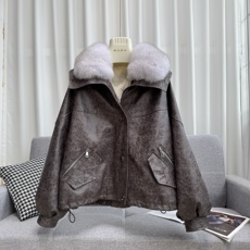 2025秋冬狐狸毛皮草女海宁真毛鹅绒气质仿绵羊皮口袋短款外套大衣