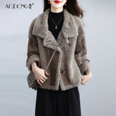 新款海宁颗粒绒皮草外套女麂皮绒短款一体保暖羊羔毛韩版大衣冬季