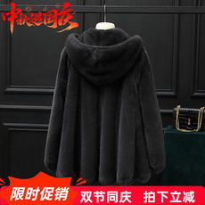 水貂皮大衣女整貂短款皮草母貂毛外套2025年海宁冬季新款带连帽