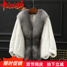 水貂皮大衣女短款大狐狸毛领蝙蝠袖2025冬季新款海宁整貂皮草外套