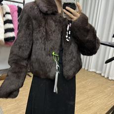 海宁女士时尚保暖兔毛整皮短款皮草外套