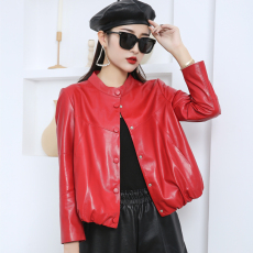 2025春季海宁真皮皮衣大码外套女绵羊皮短款大红机车夹克修身显瘦