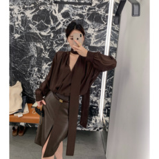 棕色小皮裙短款女秋冬半身裙2022韩版高腰紧身包臀百搭pu皮一步裙