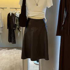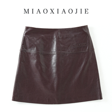 NIMILL十三行女装2025新款秋季韩系高腰修身包臀裙A字皮裙半身裙