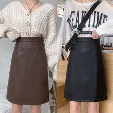 秋季大码a字半身裙皮裙修身显瘦chic高腰裙黑色小皮裙包臀短裙冬