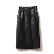 2025秋冬新款绵羊皮皮裙真皮皮裙高腰前开叉女a字裙包臀裙中长裙