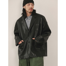 洛边 【精神抖擞】后扣设计柔软环保皮衣西装秋冬新款复古外套女