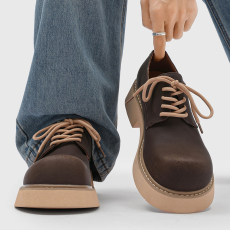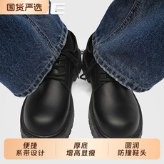 厚底圆头休闲皮鞋男士厚底增高轻便高级感美式复古工装大头德比鞋