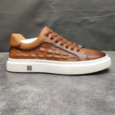 外贸商场撤柜断码男鞋清仓真皮鳄鱼纹休闲皮鞋系带复古地板板鞋夏