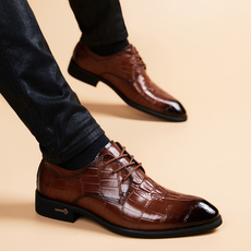 Plover皮鞋男真皮商务休闲鞋系带伴郎结婚鞋正装高档鳄鱼纹上班鞋