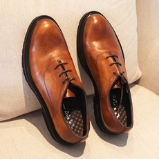 英伦风真皮复古手工做旧系带韩版男士潮流耐磨方头商务休闲皮鞋