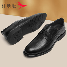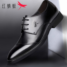 红蜻蜓男鞋真皮英伦风商务正装德比鞋舒适系带男皮鞋新郎结婚鞋子