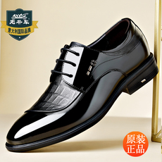 正品老爷车皮鞋男真皮透气商务正装英伦系带韩版亮面皮尖头新郎鞋