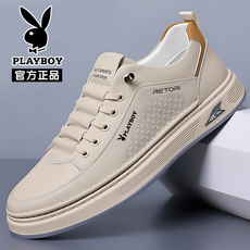花花公子2025新款轻奢爆款透气休闲皮鞋男士百搭免系带小白鞋真皮