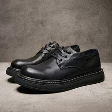 欧洲站秋季新款男鞋真皮黑色复古高级感系带休闲皮鞋厚底增高板鞋