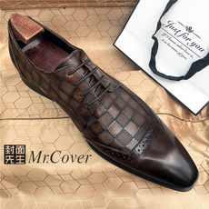 正秋季装商务男真皮方头系带修身潮流耐磨百搭高端手工头层牛皮鞋