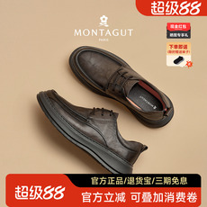 梦特娇公务皮鞋爸爸商务休闲德比秋冬加绒增高正装纯牛皮结婚男鞋