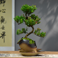 中古侘寂风丛生小叶榔榆植物茶室内装饰盆栽新中式客厅桌面绿植