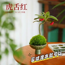 虎舌红苔藓球桌面盆栽观果植物微盆景室内客厅茶室造景懒人绿植