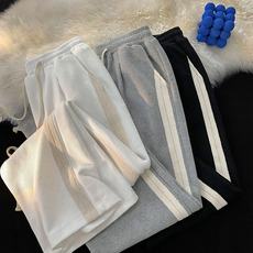 VfU加绒直筒裤卫裤女秋季新款显瘦休闲运动长裤子米白色宽松加厚