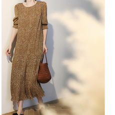 褶皱渐变印花连衣裙气质修身显瘦直筒长裙2025夏季新款女