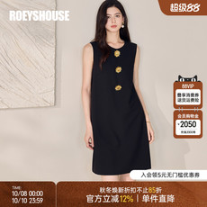 罗衣气质黑色修身无袖连衣裙女2025夏季新款时尚圆领直筒裙12045
