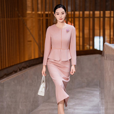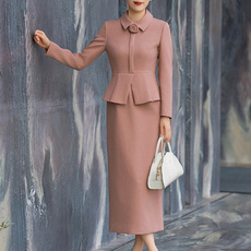 高档醋酸连衣裙女2025秋季新款时尚气质长袖修身粉色减龄直筒裙子