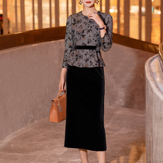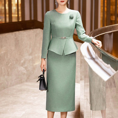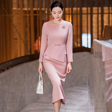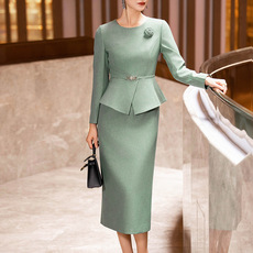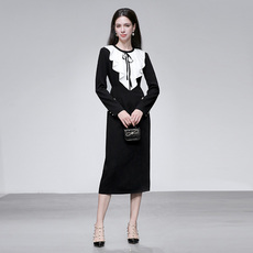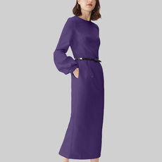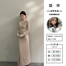 颂宋 秋季开叉直筒裙套头修身高腰显瘦长袖收腰连衣裙长裙DT1535