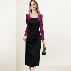 法式复古小香风连衣裙女秋冬2025新款修身显瘦直筒裙正式场合长裙