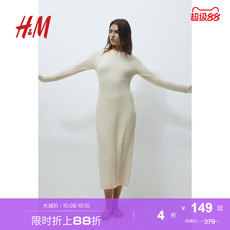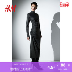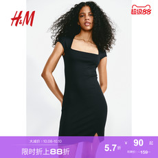HM女装秋季方领汗布直筒下摆盖袖修身连衣裙1205804