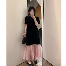 粉色连衣裙女2025秋季新款气质时尚减龄修身显瘦假两件长袖直筒裙