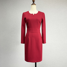 中长款红色长袖连衣裙女2025职业装弹力修身性感百搭包臀直筒裙