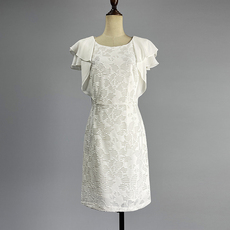 小水平采娜同款白蕾丝气质短袖翻领修身连衣裙女高端小众直筒长裙