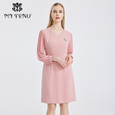 马天奴女装秋冬秋香草粉V领修身连衣裙气质简约直筒裙MCA131DR0