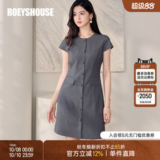 罗衣知性纯色圆领连衣裙女2025夏季新款气质通勤修身直筒裙12170