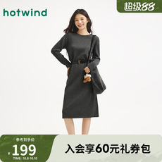 热风2025年冬季新款女士直筒纯色修身针织连衣裙时尚简约