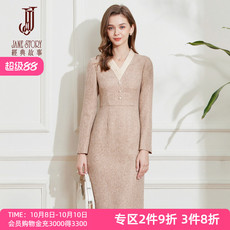 LANCY/朗姿2025秋季新款高端半高领羊毛收腰直筒修身气质连衣裙