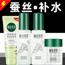 相宜本草四倍蚕丝套装凝亮洁面膏洗面奶柔肤水乳精华霜女补水保湿