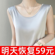 夏季冰丝吊带上衣女外穿真丝无袖内搭大码白色背心宽松醋酸打底衫