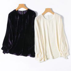 今年流行2025上衣新款真丝丝绒高端宽松漂亮洋气减龄别致绝美小衫