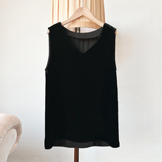 敲厚实~重磅35姆米砂洗真丝重绉100桑蚕丝及简宽松无袖立领上衣秋
