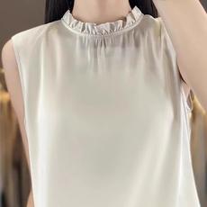 醋酸真丝半高领花边丝绸背心女打底宽松内搭无袖夏季木耳边上衣