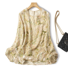 白色印花上衣带真丝女高级感薄款宽松长袖圆领晕染新款慵懒松弛感